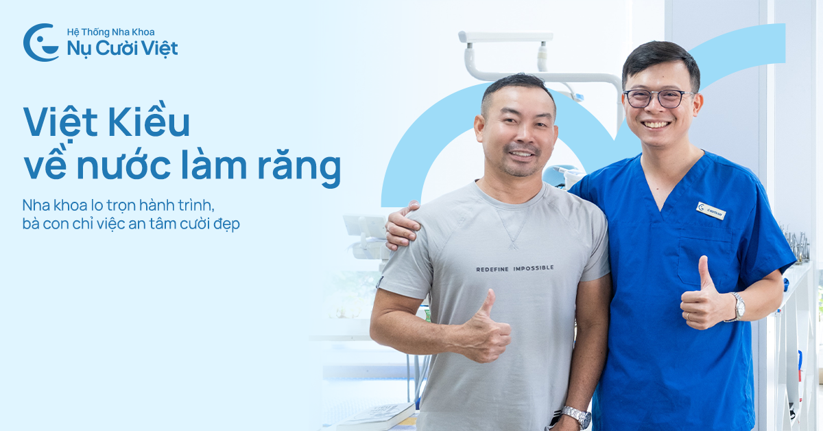 Với đặc thù thời gian về nước hạn chế, nhiều Việt kiều mong muốn một hành trình làm răng được chuẩn bị sẵn, hạn chế tối đa những lo lắng về kế hoạch điều trị, chi phí, đi lại hay nghỉ ngơi. Từ nhu cầu đó, Nha khoa Nụ Cười Việt thiết kế riêng dành cho khách hàng Việt kiều gói “Nụ Cười Quê Hương” nhằm đồng hành xuyên suốt hành trình làm răng tại quê nhà.
